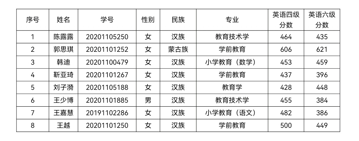 根据教育部推荐2024年优秀应届本科毕业生免试攻读硕士学位研究生工作安排、《全国普通高等学校推荐优秀应届本科毕业生免试攻读硕士学位研究生工作管理办法(试行)》(教学[2006]14号)、《关于进一步规范和加强推荐优秀应届本科毕业生免试攻读研究生工作的通知》(教学厅[2020]12号)、《新葡萄88805官网关于推荐优秀应届本科毕业生免试攻读硕士学位研究生工作实施办法》(修订)(内师校发〔2020〕52号)和《关于开展推荐2024年优秀应届本科毕业生免试攻读硕士学位研究生工作的通知》等文件精神,依据《新葡萄88805官网关于推荐优秀应届本科毕业生免试攻读硕士学位研究生工作实施细则》(2023年修订)新葡萄88805官网推免领导小组经集体评议表决,确定推免学生初选和备选学生名单如下: